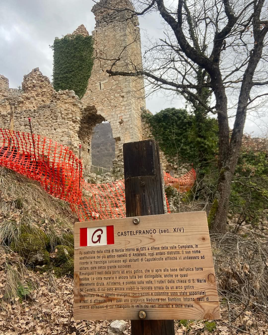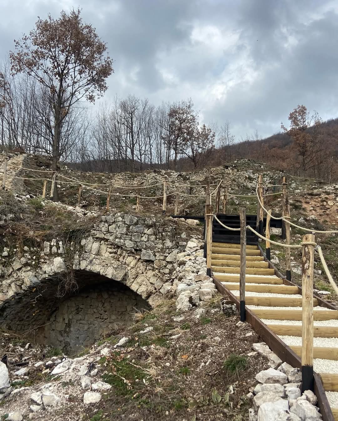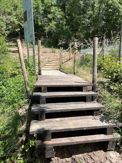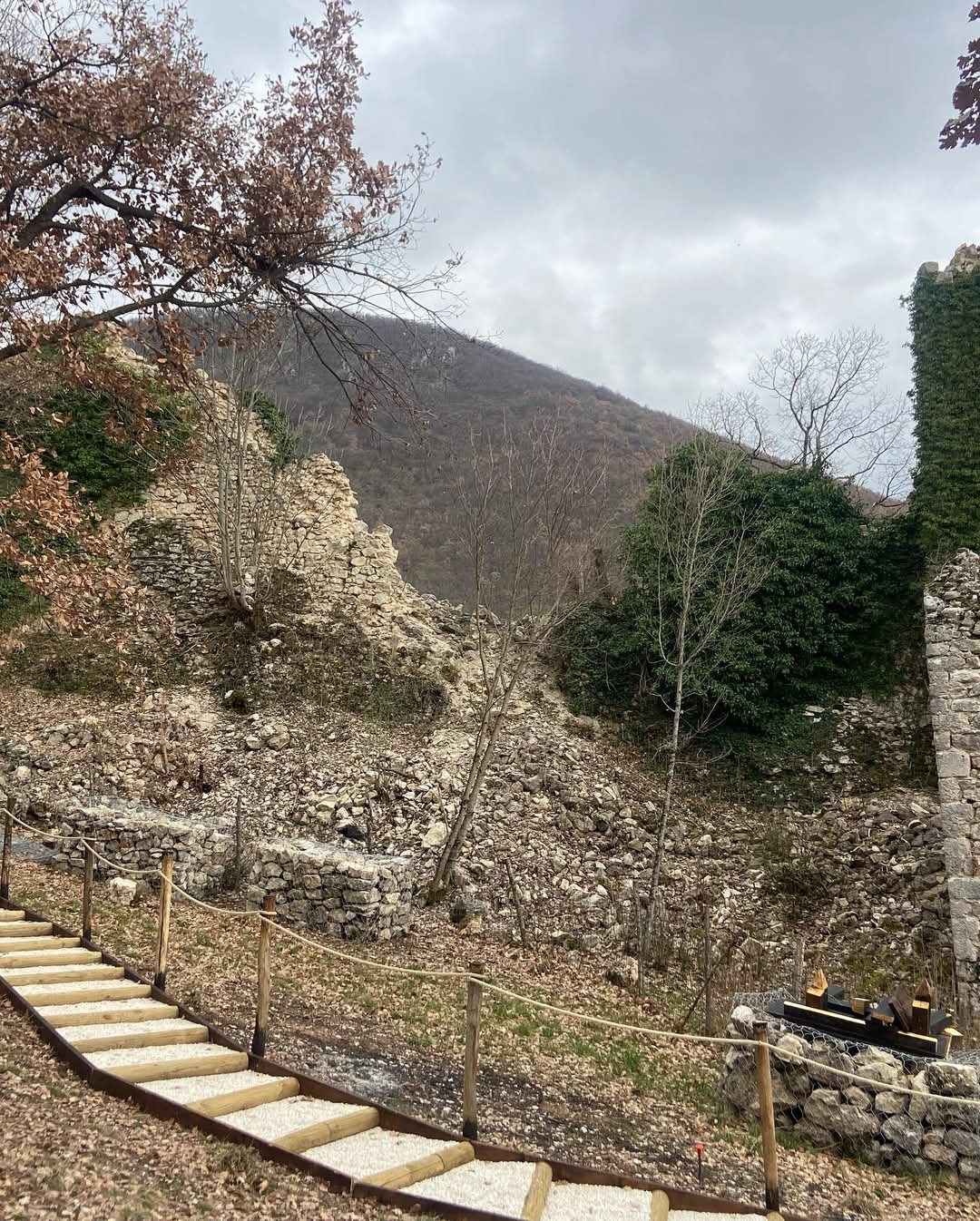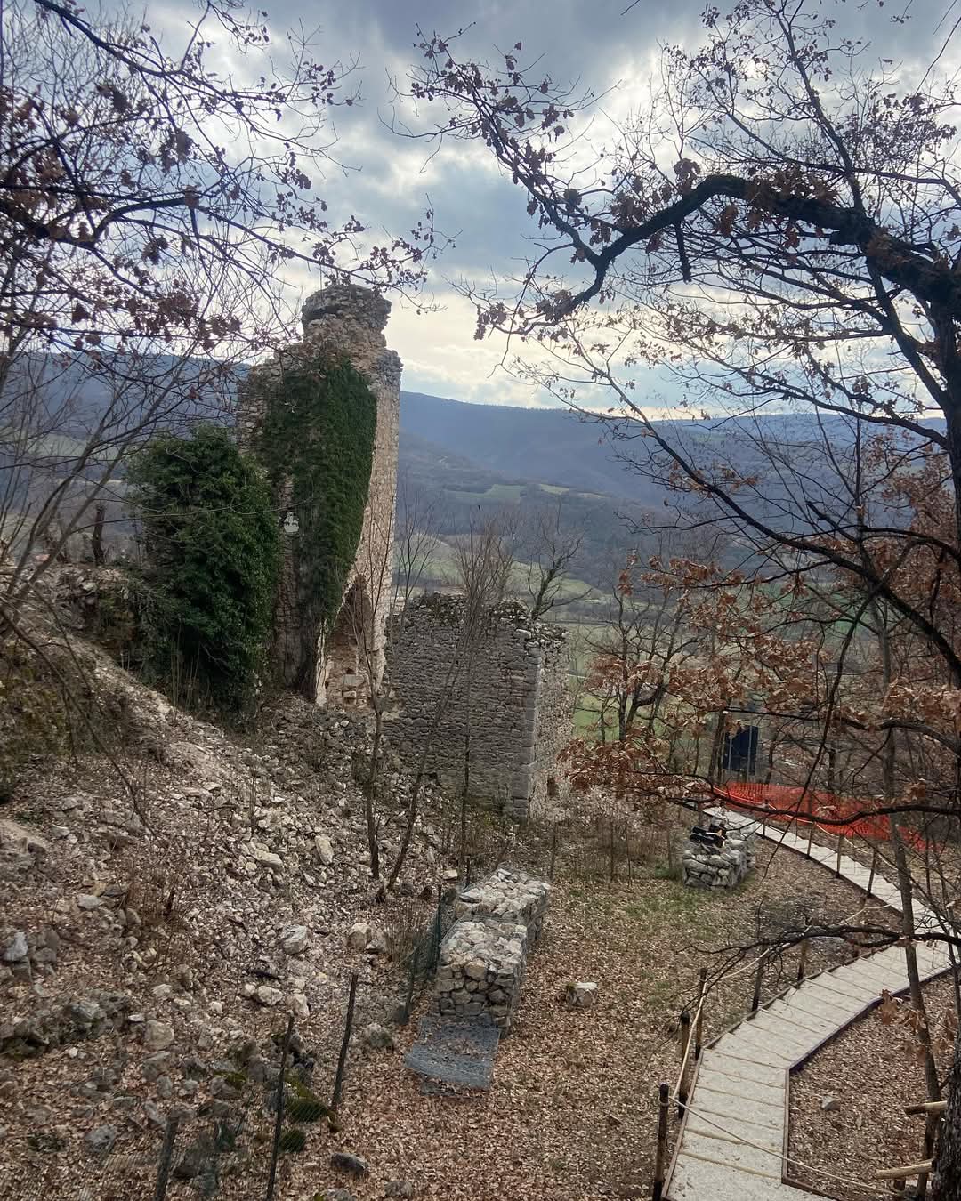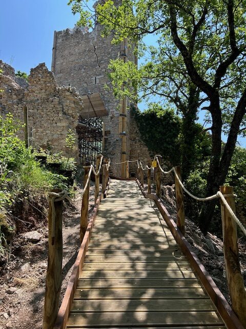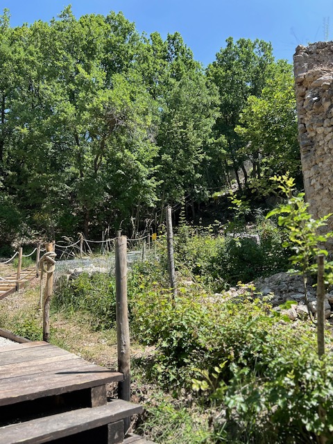 Il percorso che sarà realizzato permetterà l’ingresso e la visita dei ruderi in sicurezza, scavalcando la cinta muraria con delle scalette in legno e scenderà verso la parte centrale percorrendo una lunghezza di circa 80 mt., con una larghezza media di ml. 1,00, intervallato e delimitato da sponde in tavole / tronchetti di legno (atte a contenere il ghiaietto per una migliore percorribilità)