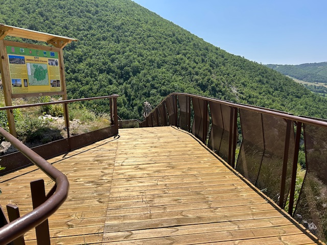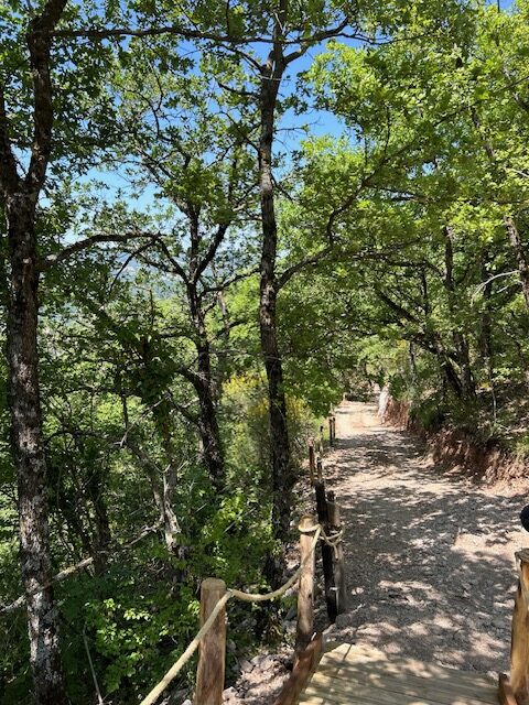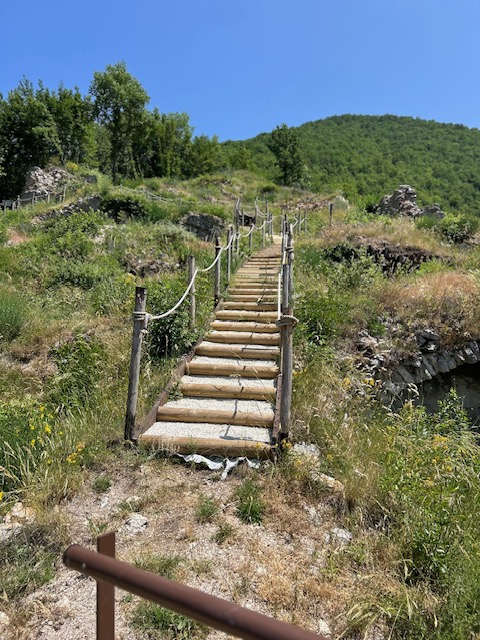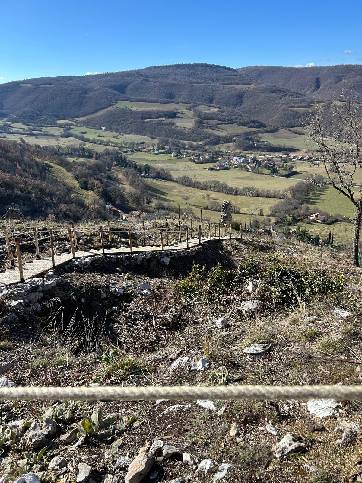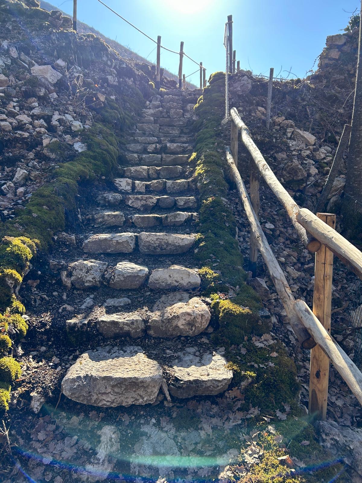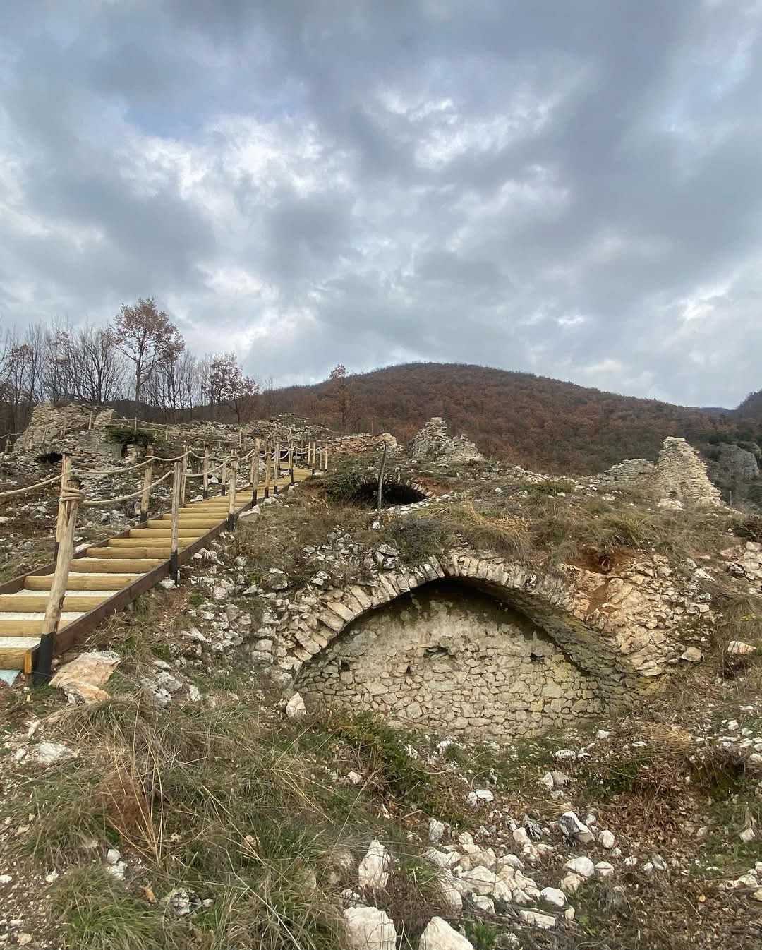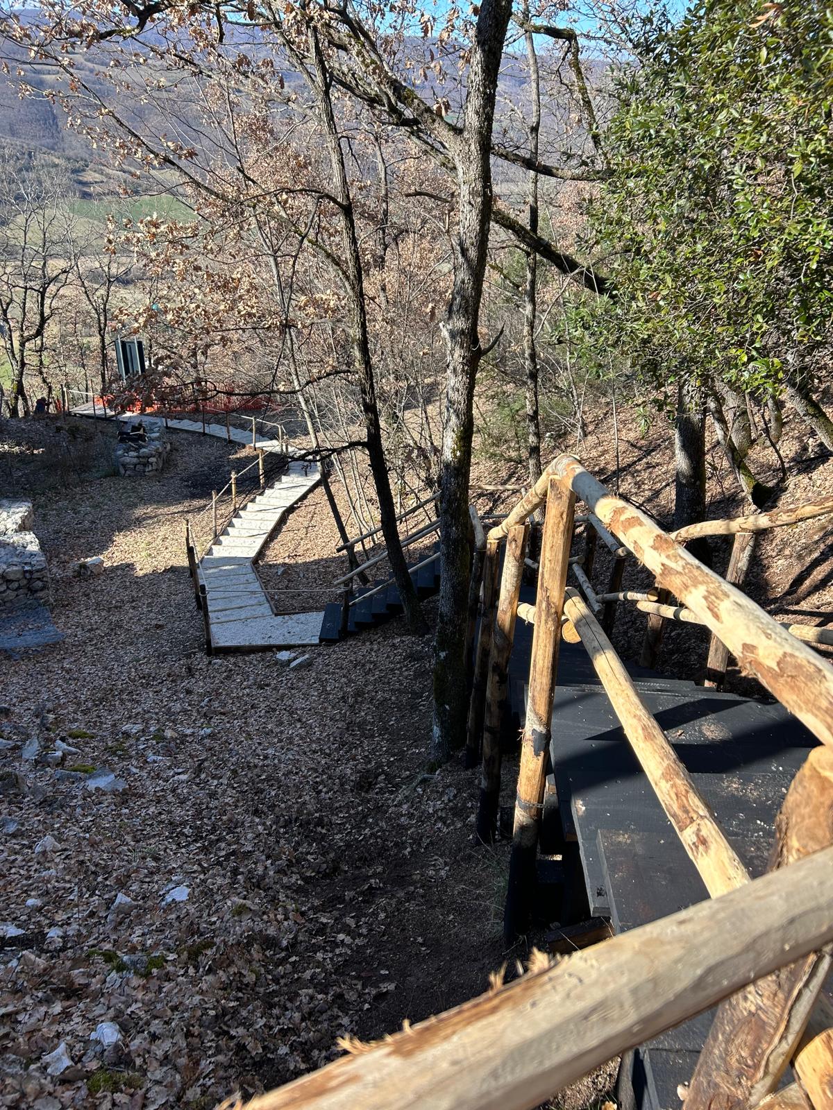 Il percorso che sarà realizzato permetterà l’ingresso e la visita dei ruderi in sicurezza, scavalcando la cinta muraria con delle scalette in legno e scenderà verso la parte centrale percorrendo una lunghezza di circa 80 mt., con una larghezza media di ml. 1,00, intervallato e delimitato da sponde in tavole / tronchetti di legno (atte a contenere il ghiaietto per una migliore percorribilità)